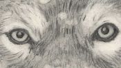 This pencil drawing shows a wolf. On his thick winter coat is a little snow and he looks at the viewer boldly. The drawing is made with soft pencils (B2 to B6) on paper. I have worked on it for about two hours.